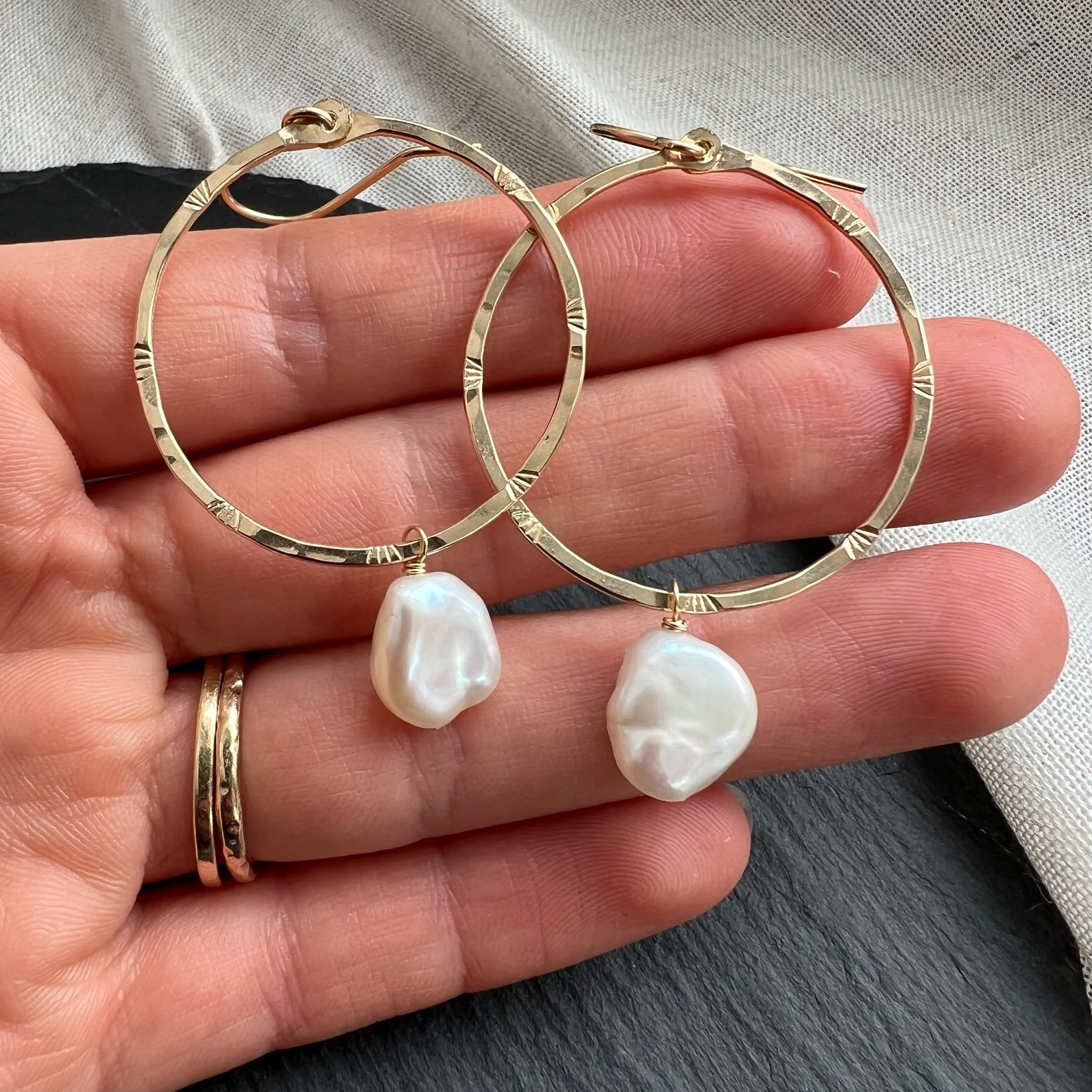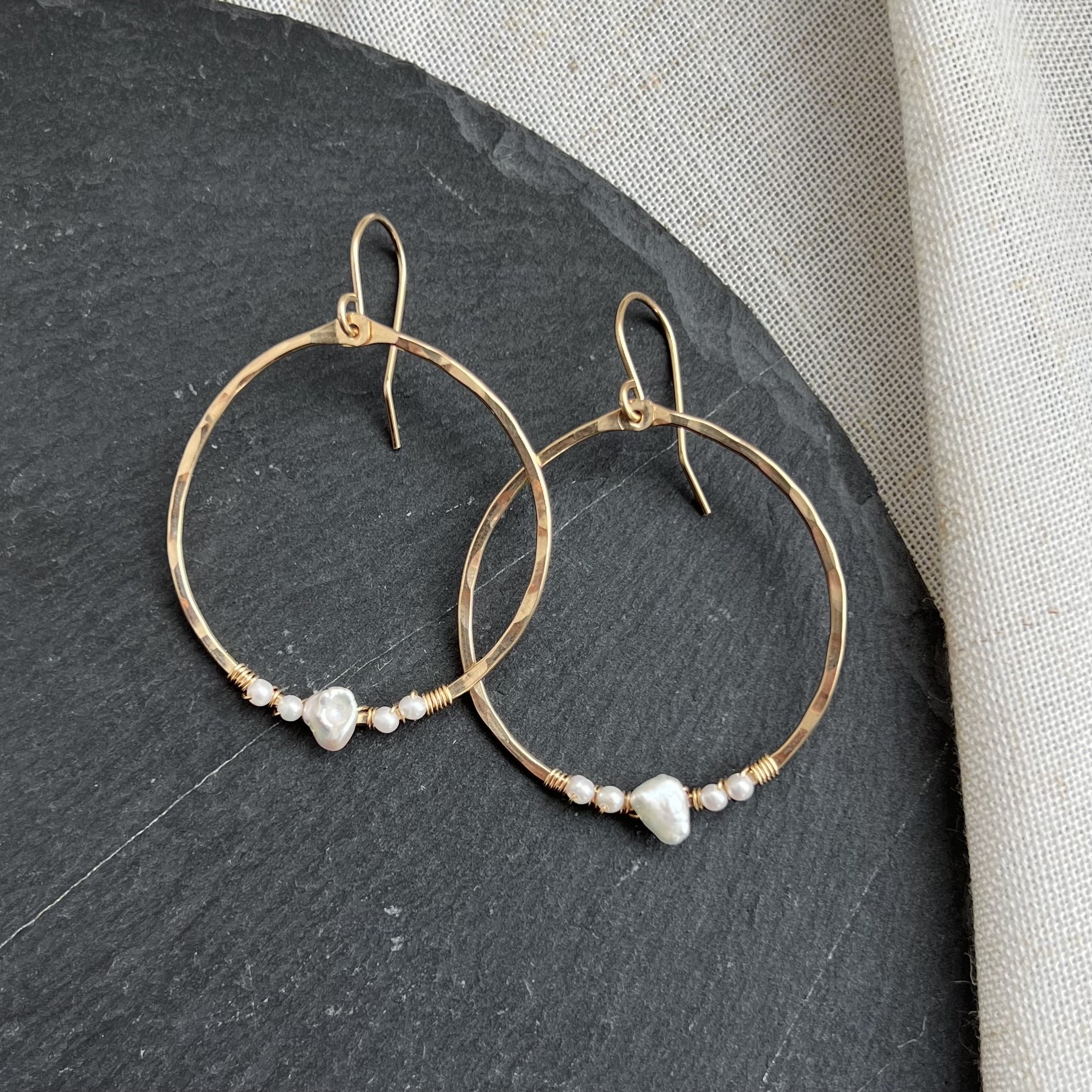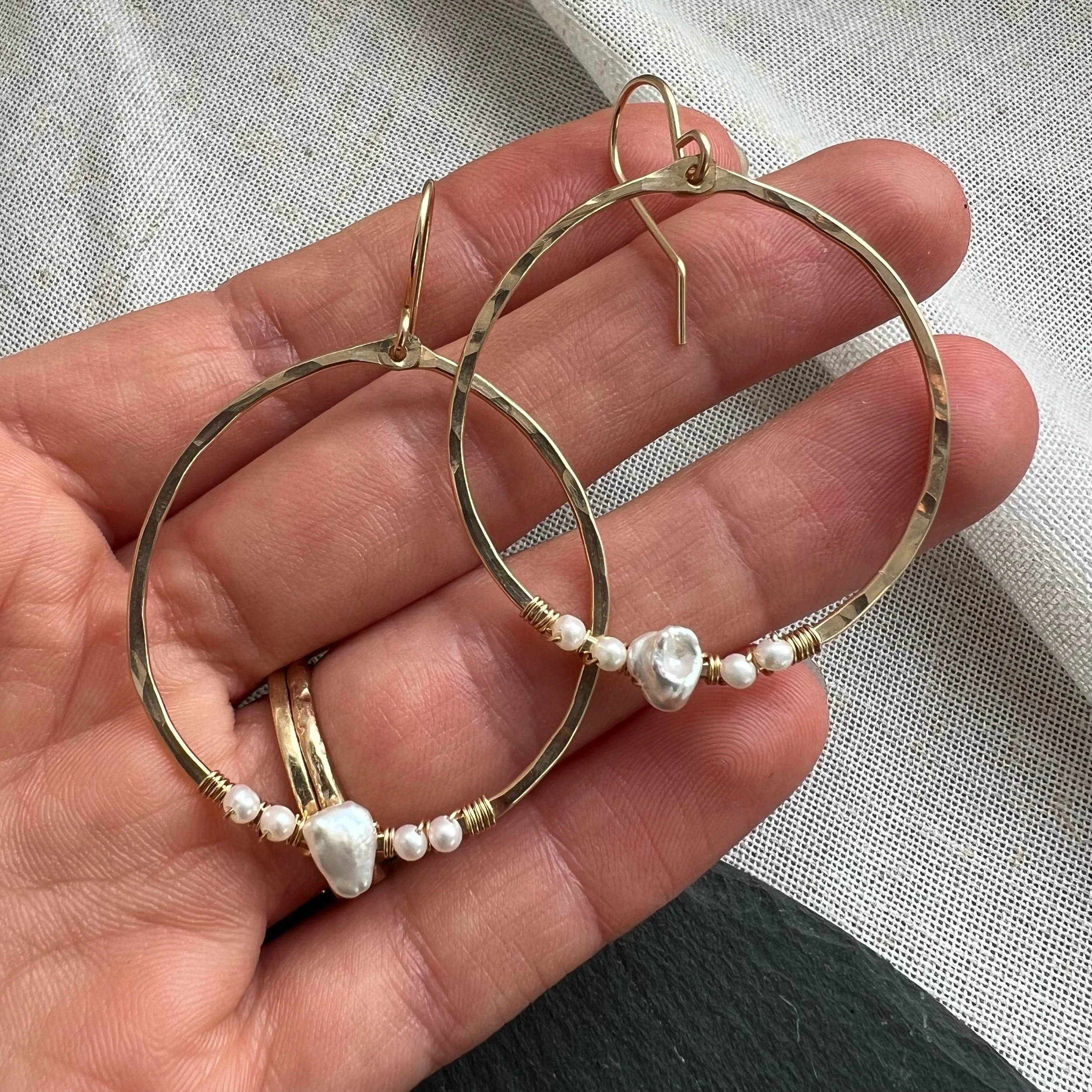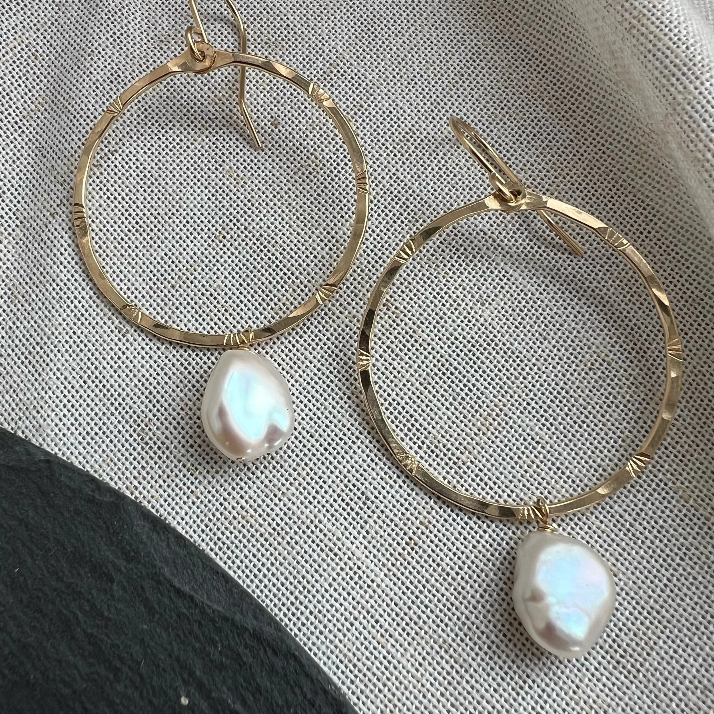 Shop › Gold Pearl Wrap Hoops LG Image 1 of 4 Image 2 of 4 Image 3 of 4 Image 4 of 4 Gold Pearl Wrap Hoops LG $68.00 14k gold-fillPearls Add To Cart Added! 14k gold-fillPearls Reviews Reviewer Name Review Date Star Rating Description Posted on Etsy Product Show More You Might Also Like Quick View Gold Pearl Hoops LG $65.00 Quick View Silver Aquamarine & Herkimer Droplet Earrings from $50.00 Sold out Quick View Pearly CZ Charm Huggies $38.00 Quick View Mini Oval Kyanite Hoops $40.00 Sold out Quick View Labradorite Elongated Fringe Earrings $82.00 Sold out